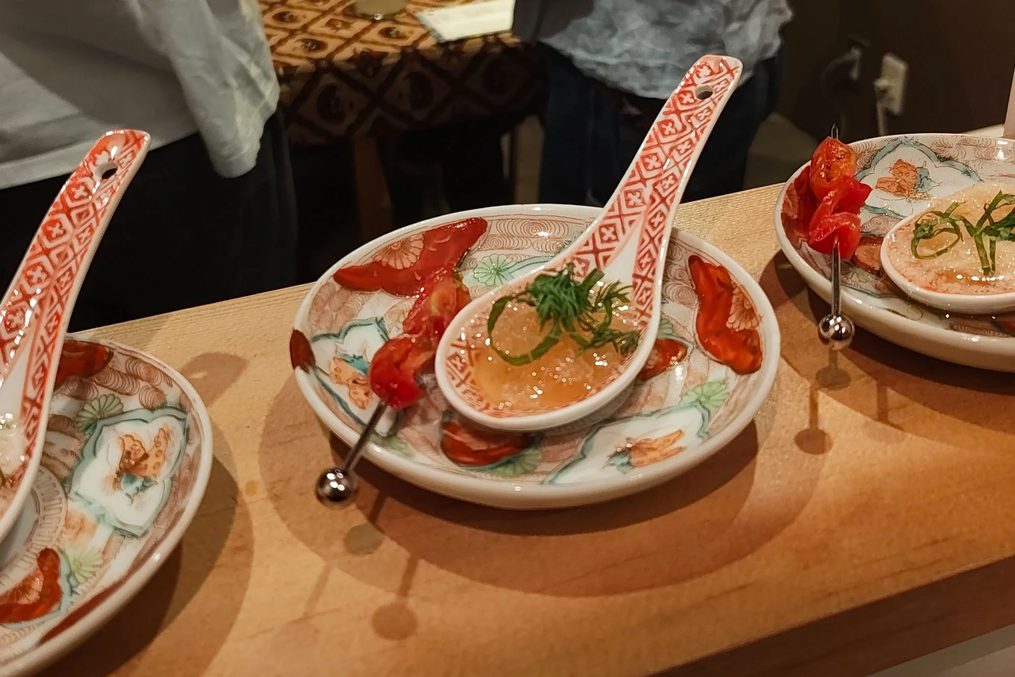 While less common in Japan, private dining experiences have been popular in Singapore ever since the global pandemic in 2020.[6] With the post-lockdown surge of commercial rent and sharpening of culinary skills came the natural progression of people opening their dining rooms to the public. People kept coming back, not only for unique menus but for the conversations. In modern society where people are increasingly facing screens or eating takeout meals alone, communal dining experiences force you out of your comfortable shell, seating you next to a stranger. Doused in the light of new spaces, exotic flavours and very importantly, unfamiliar aesthetic tastes, one finds that the tongue naturally relaxes into conversations. Gravy Baby’s dining experience spanning a long communal table and sharing plates runs almost like a performance, with dishes interspersed with candid sharing about the art by the artists, served alongside the remedy to jittery conversation—drinks.