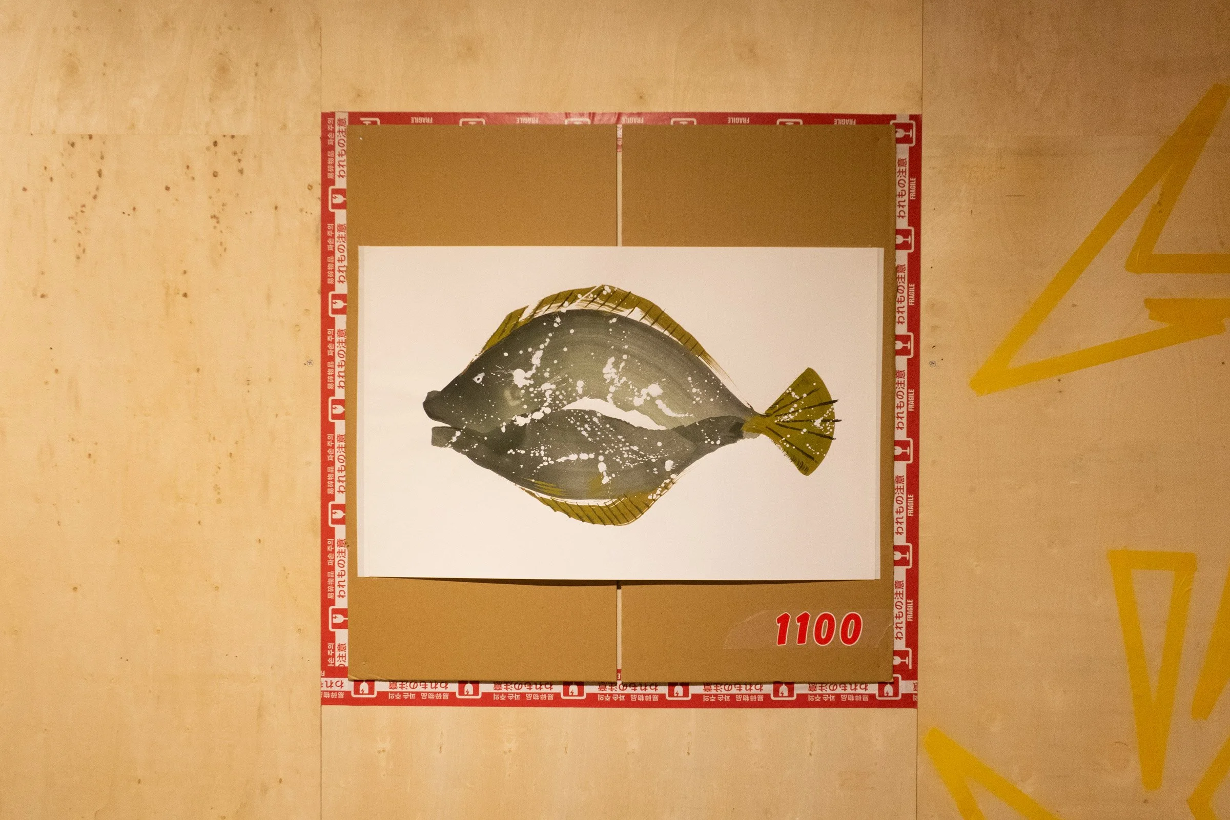 Chinese painting has often been defined by its use of “虚”, translated to mean the “void” or “nothingness”—one of the cornerstones of Dao philosophy. [4] Similarly, the use of a box is in the space it “contains”. Allowing space for the audience to interpret meaning from a lack of detail is seen as genius, and achievable only through stoic observation of the living subject. Ironically, the artist encountered these subjects at the seafood wholesale marketplace in Takamatsu—chaos to the unfamiliar observer, systematic to those whose livelihoods depend on it, and a death sentence to the beings confined to their styrofoam prisons. Yet, she erases these physical boundaries with the calm of the void, lifting only the vitality of the creatures in a moment where their future remains unknown, and laying them down on a sheet.